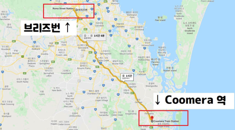 브리즈번에서 드림월드 가는 방법(지도)