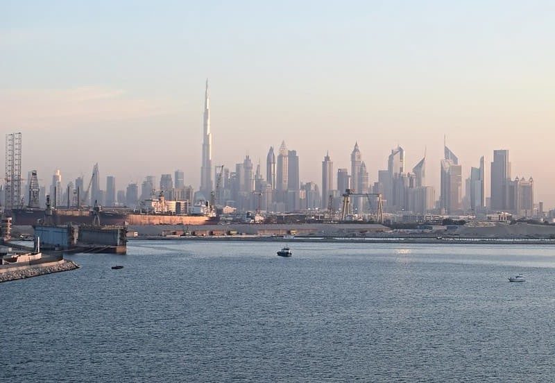 사람이 적고, 두바이 도시의 탁 트인 시야를 볼 수 있습니다.